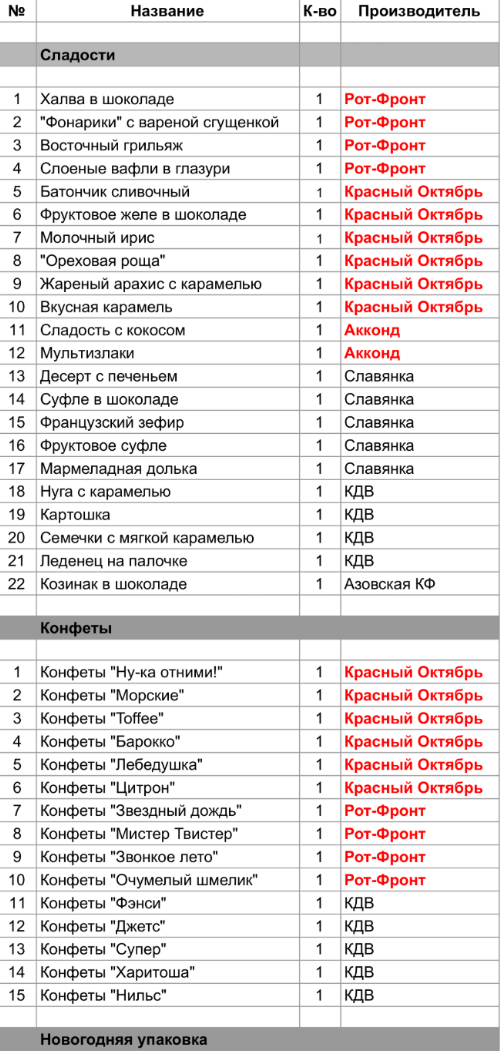 1. Проверить, можно ли внести изменения в состав подарка. Если нет, то скорее всего наборы были собраны еще летом из конфет, произведенных еще раньше